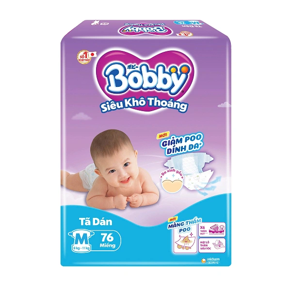 Bỉm – Tã dán Bobby size M 76 miếng (cho bé 6 – 11kg)