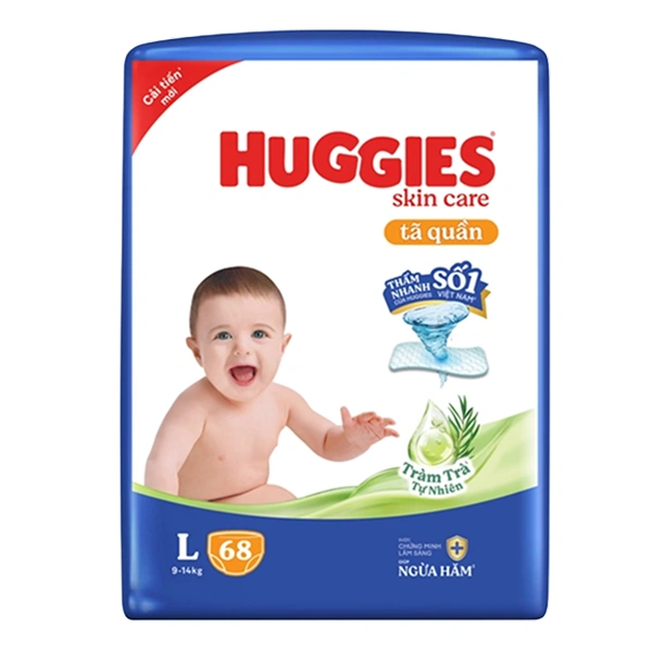 Bỉm – Tã quần Huggies tràm trà size L 68 miếng (cho bé 9 – 14 kg)