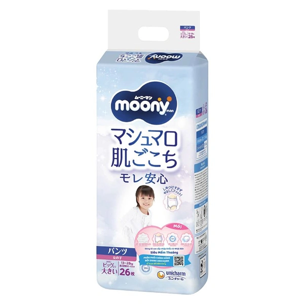 Tã quần cho bé gái Moony size XXL